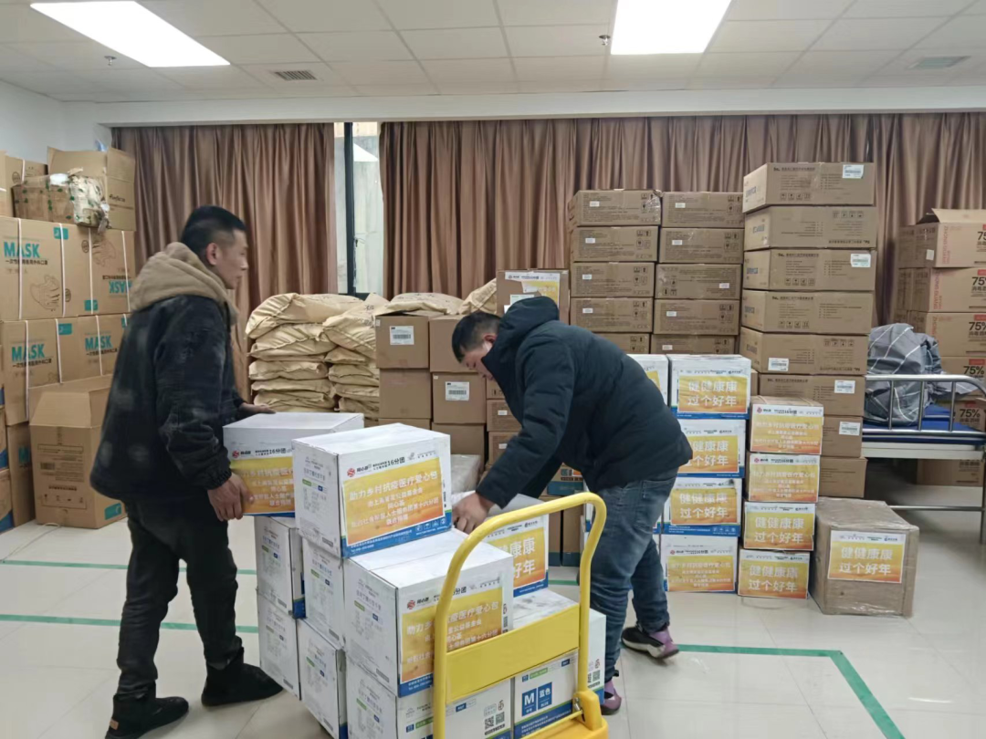 在和顺丰速递洽谈合作的同时,复星基金会在复星集团及旗下企业内部紧急招募到近百名员工志愿者,结合自己的春节返乡计划将药品“人肉”背到受捐县。比如1月18日,舍得酒业的员工赵兴带着3000瓶药从上海飞到成都,一下机场就由复星商社的王慧博接过1000瓶转运去2022年地震受灾的石棉,赵兴则继续踏上去射洪市送药的旅程。第二天,这两位复星员工志愿者又在当地县卫健局的安排下分赴多个乡镇卫生院陪同发药,并支持当地给乡村医生和村民开展的用药培训。新华社等媒体对整个送药过程进行了报道。