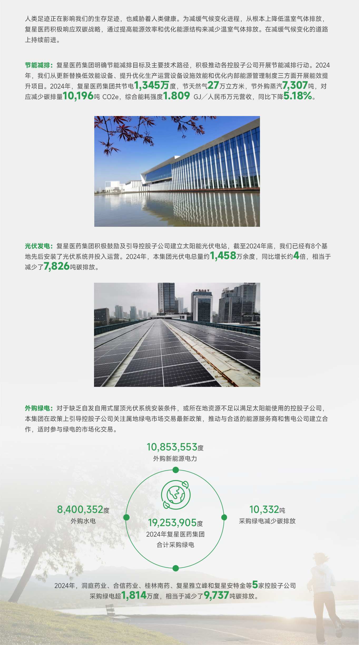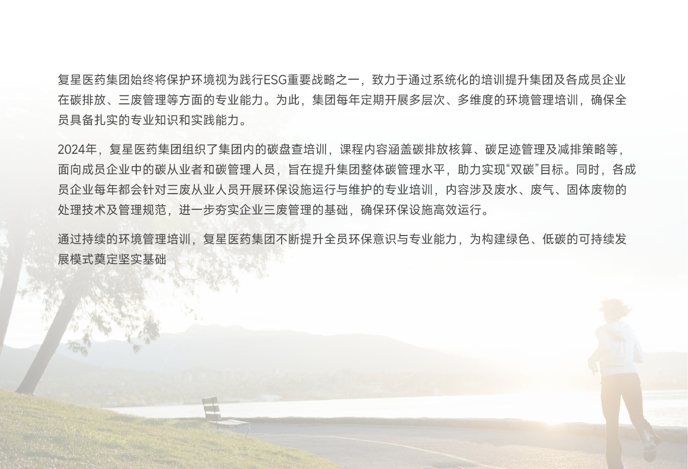 复星医药董事会为“应对气候变化”和“环境管理”议题的最高责任机构,由ESG管理体系全面负责议题的监督、决策、管理和执行。同时,本集团已将“应对气候变化”和“环境管理”相关目标与指标纳入高级管理层绩效考核书中。