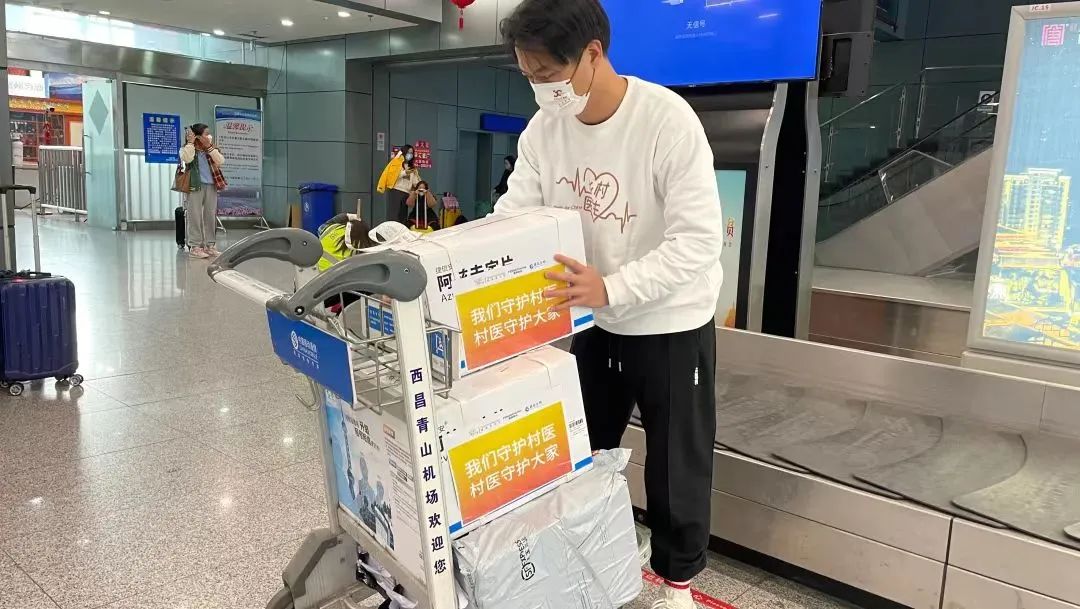 在和顺丰速递洽谈合作的同时,复星基金会在复星集团及旗下企业内部紧急招募到近百名员工志愿者,结合自己的春节返乡计划将药品“人肉”背到受捐县。比如1月18日,舍得酒业的员工赵兴带着3000瓶药从上海飞到成都,一下机场就由复星商社的王慧博接过1000瓶转运去2022年地震受灾的石棉,赵兴则继续踏上去射洪市送药的旅程。第二天,这两位复星员工志愿者又在当地县卫健局的安排下分赴多个乡镇卫生院陪同发药,并支持当地给乡村医生和村民开展的用药培训。新华社等媒体对整个送药过程进行了报道。